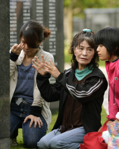 Residents of Okinawa and family members of those killed during the battle for the island during World War II mourn the victims, at the Okinawa Peace Memorial Park on Mabuni Hill.