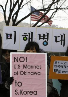 Japanese protest the continuing presence of American forced in