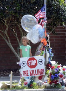 Florida children stand near a make-shift shrine to Trayvon Martin in Sanford, Florida. The killing of the young man has once again exposed America's racial fault line and the battle over the easy availability of firearms.