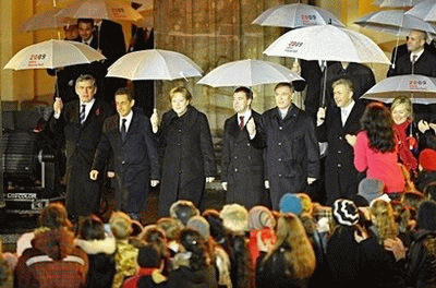 drizzly celebration for Western leaders: British Prime Minister Gordon