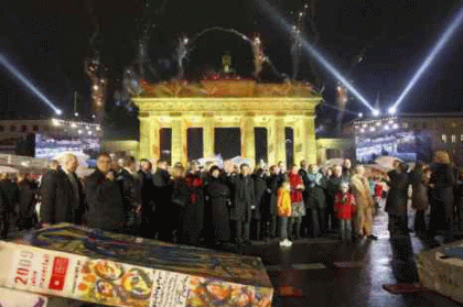 at the Brandenburg Gate for the 20th anniversary of